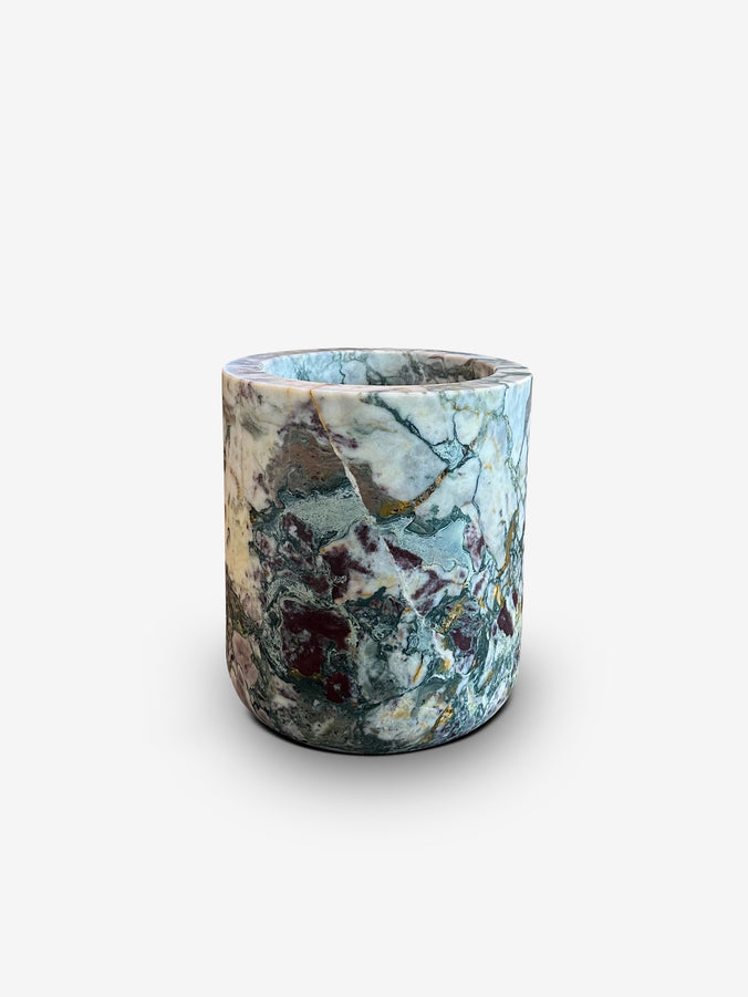 His pieces, characterized by clean lines and tactile surfaces, exude a serene, meditative quality. Whether in the form of a leather-wrapped tray or a hand-carved stone vessel, Verheyden’s work brings a sense of quiet sophistication to interiors.