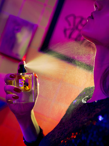 54 is a tribute to the glamour and rhythm of Studio 54, blending patchouli, chocolate, rum, and cinnamon in a sultry top. Pina colada, vanilla, and davana form a lush, tropical heart, while tobacco, saffron, and nagarmotha in the base ground the fragrance in warmth and swagger. A disco-era gourmand with bold, magnetic energy.