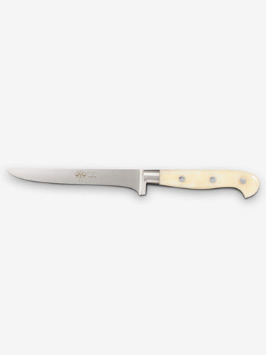 The boning knife with wood block by Berti provides professional quality and convenience. Featuring full-tang stainless steel with a durable handle, this tool is designed to last a lifetime. The included wood block ensures a safe and secure storage solution.