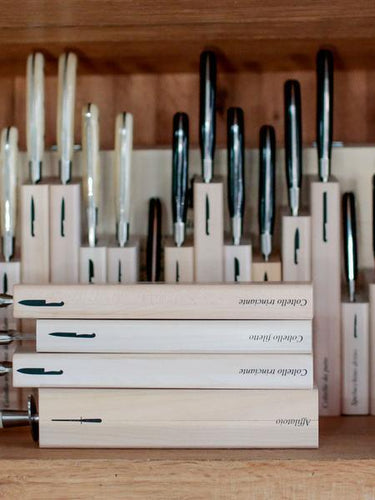 Berti knives represent the pinnacle of Italian craftsmanship, handcrafted with precision and passed down through generations since 1895. Each knife is made by a single artisan from start to finish, ensuring unmatched quality and a deep connection to tradition. With a focus on exceptional materials and time-honored techniques, Berti creates heirloom-quality knives that are as beautiful as they are functional. Whether in the kitchen or at the table, these expertly crafted tools embody the artistry of fine Italian cutlery.