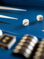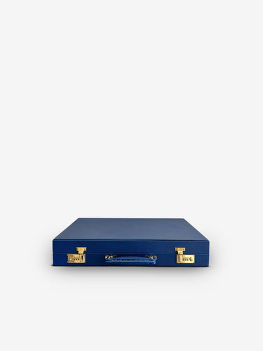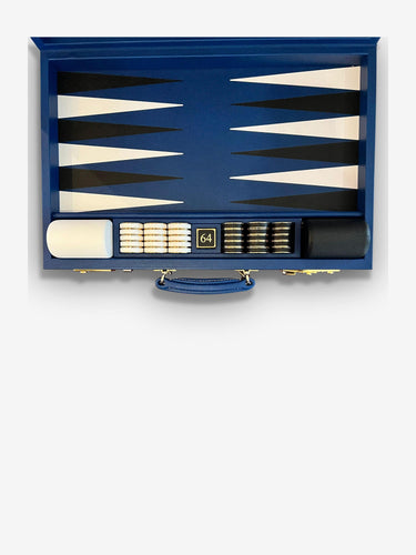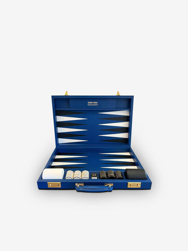 This unique Cobalt Blue and Black Leather Backgammon Board by Geoffrey Parker is a beautiful addition to your gaming collection. Handcrafted with the classic combination of cobalt blue and black leather, the board will bring a sophisticated style to your favorite game. Play with friends and family for years to come with this luxurious board's quality construction.