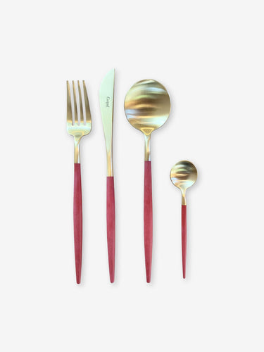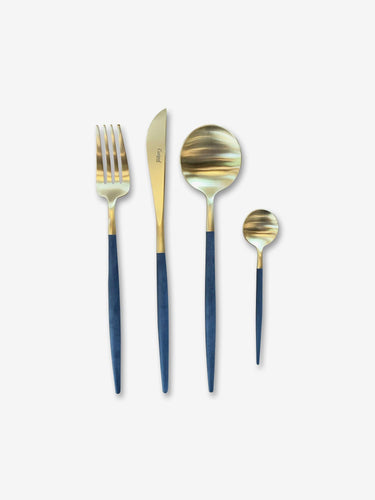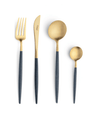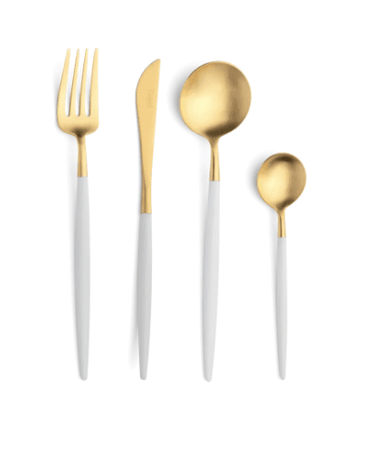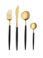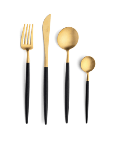 - Goa Matte brushed gold plated 24 piece set includes 6 dinner knives, 6 dinner forks, 6 table spoons and 6 tea spoons