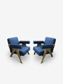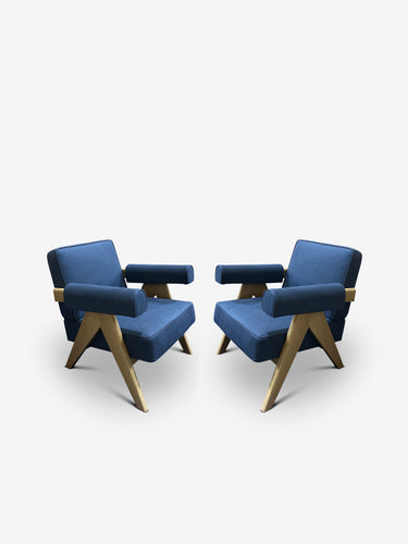 Pair Of Pierre Jeanneret 1960 Capitol Complex Chairs in Lipari Blu in Oak