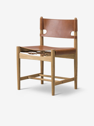 The Borge Mogensen Spanish Dining Chair combines timeless design with modern craftsmanship, made from solid, soaped oak. Its sleek, contemporary style offers a minimalist touch that enhances any dining room. Designed for comfort, its ergonomic seat ensures a relaxing dining experience with every use.