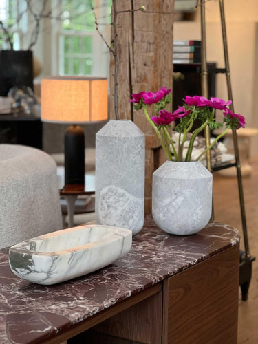 This Vasque High Medium Vase by Michael Verheyden is crafted from Mondragone marble for an elegant finish. Its sleek shape is perfect for any contemporary interior, making it the perfect luxury accessory.